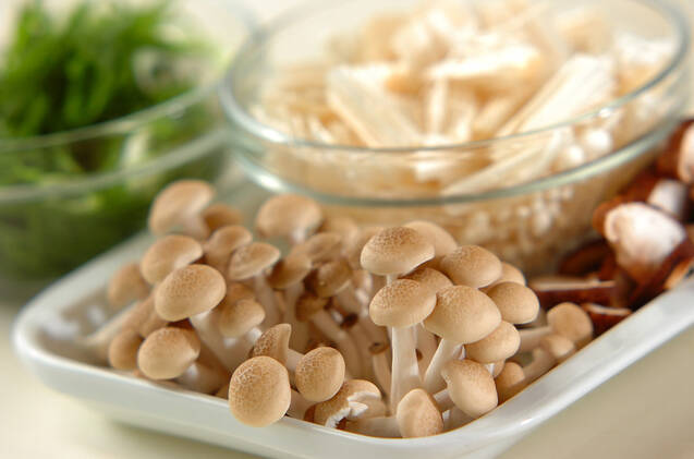 エノキは根元を切り落とし、3等分の長さに切り、根元はバラバラにほぐす。