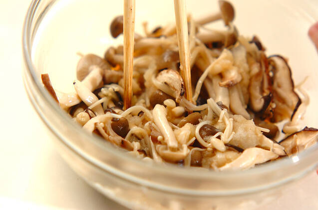 大きめのボウルに大根おろし、<調味料>の材料を加えて混ぜ、(1)を加えて和える。器に盛り分けて貝われ菜をのせる。