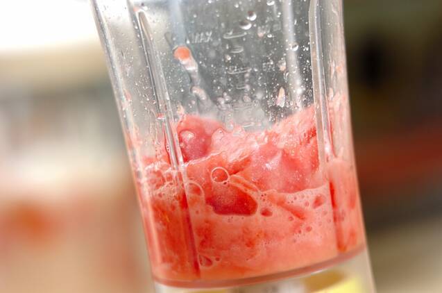 ミキサーにスイカ、水、砂糖、レモン汁を入れて20秒くらいかくはんする。