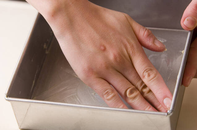 カカオマスは湯せんで溶かしておく。卵は室温にもどしておく。型にバター(分量外)をぬる。オーブンは170℃に予熱しておく。