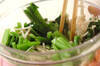 <ゴマダレ>のボウルに(1)を加えて和え、器に盛る。