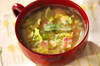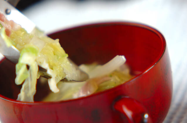 中火で4~5分煮て、コショウで味を調える。器に注ぎ、ドライパセリを散らす。