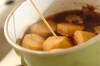 竹串がスッと刺さったら器に盛り、ユズ皮を散らす。