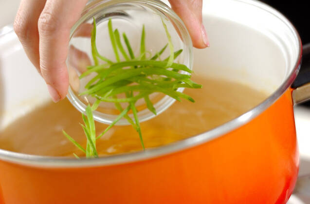 水煮コーン、キヌサヤを加えて塩コショウで味を調え、器によそう。