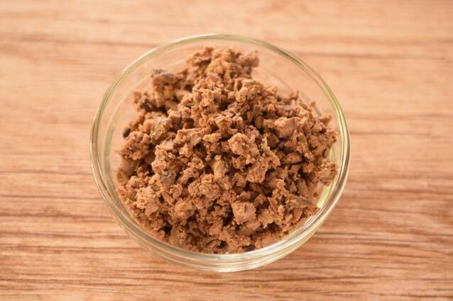 レバーは串から外し、まわりのタレを洗い流す。水気をふきとり、細かいみじん切りにする。