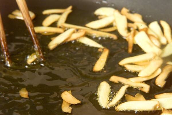 フライパンにオリーブ油、ニンニクを入れて弱めの中火にかける。ニンニクが薄いキツネ色になれば、刻み赤唐辛子、ゆで上がったスパゲティを加え、強火にして、手早く炒めあわせ、塩、コショウで味を整える。