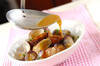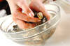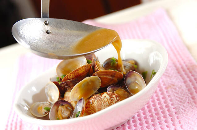 蒸し汁は網でこして半量になるまで煮詰め、バター、しょうゆを加えて溶かす。器に盛ったアサリに刻みネギを振り、蒸し汁を全体にかける。