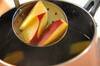 鍋を強火にかけ、煮汁が少なくなったら火を止めてすり黒ゴマを加える。サツマイモを戻し入れてからめ、器に盛る。