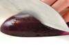ナスはヘタを残してガクを取ってから半分に切り、斜めに浅く切り目を入れてから水に放ち、アク抜きをしておく。