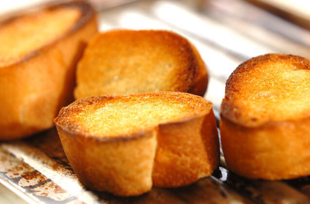 オリーブ油をぬって、再びオーブントースターでカリッと色よく焼く。