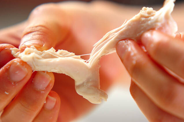 鶏ささ身は筋を引き、耐熱容器に入れて酒を振り、ラップをして電子レンジで1分30秒~2分加熱する。粗熱が取れたら巻きやすい大きさに手で裂く。