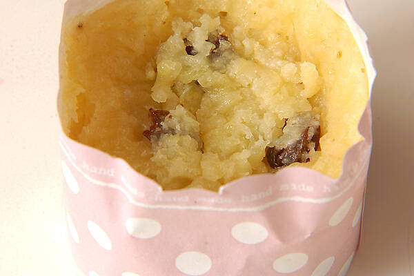 マフィンカップに1の生地を流し入れ、ふんわりラップをかけ電子レンジで2~2分10秒加熱し、そのまま冷ます。電子レンジは600Wを使用しています。