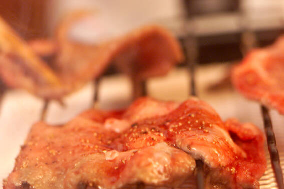 牛タンは塩、コショウをして両面軽く網焼きする。