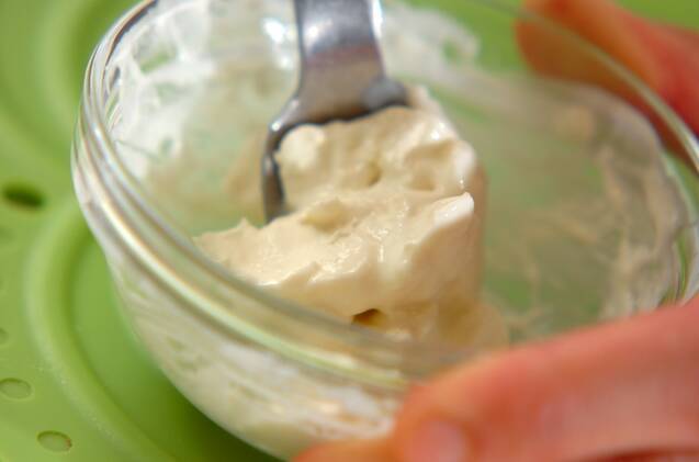 クリームチーズは常温にもどし、プレーンヨーグルトを加えてなめらかになるまで混ぜる。バナナは幅5mmの輪切りにする。