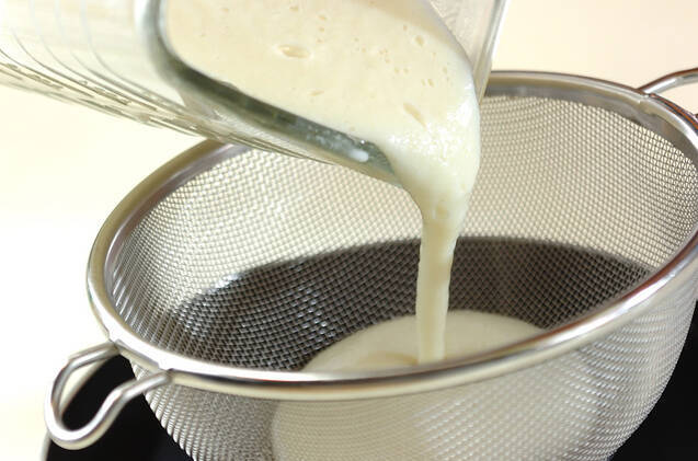 (2)に牛乳を加えてミキサーでかくはんし、網を通して鍋に戻し入れる。中火にかけ、ひと煮たちしたら塩、白コショウで味を調える。器に注ぎ、粉パプリカを振る。