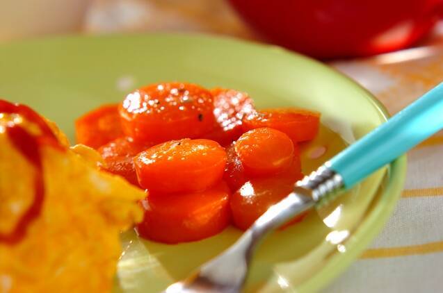 バターの染みた甘いニンジンはとっても美味。ハーブソルトで香りのアクセントを。