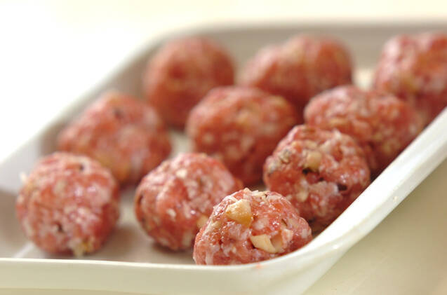 <ゆでスープ>の材料を中華鍋に入れて煮たたせる。冷やしておいた<肉団子>にすり白ゴマを混ぜ合わせ、手のひらに分量外のサラダ油を薄くつけて丸くまとめて(1人分5~6個)、熱湯に入れる。