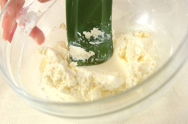 クリームチーズとレモン汁をボウルに入れて、湯煎にあてて柔らかくしておく。