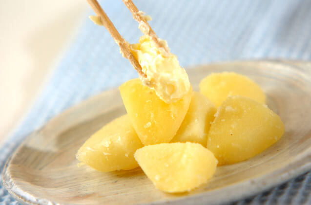 周りが白く粉をふいたようになったら器に盛り、岩塩と合わせたバターをのせる。