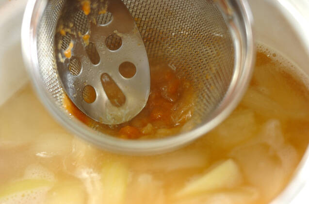 みそを溶き入れて火を止め、ミョウガを加えてひと混ぜし、器に注ぎ分ける。