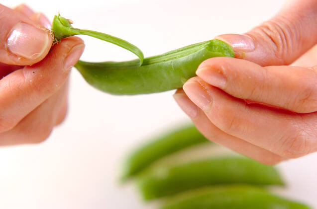 スナップエンドウは筋を引いて塩を入れた熱湯でサッとゆでる。