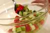 ボウルに<ドレッシング>の材料を入れ、混ぜ合わせる。
