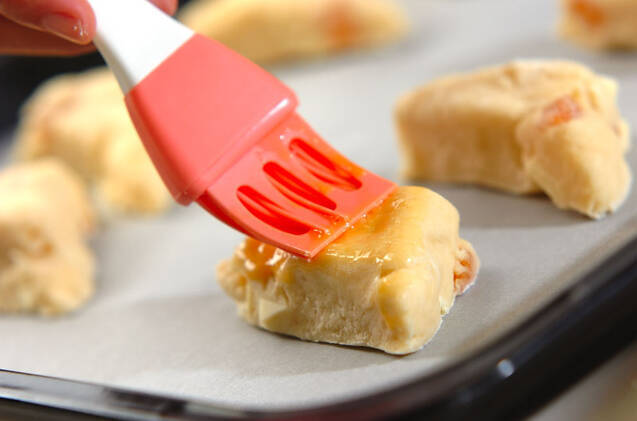 表面に溶き卵をぬり、予熱しておいたオーブンで25~30分焼く。