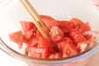 ボウルに塩、オリーブ油を混ぜ合わせトマトを和える。ラップをかけ、冷蔵庫で冷やす。器に盛り、ドライパセリをふる。