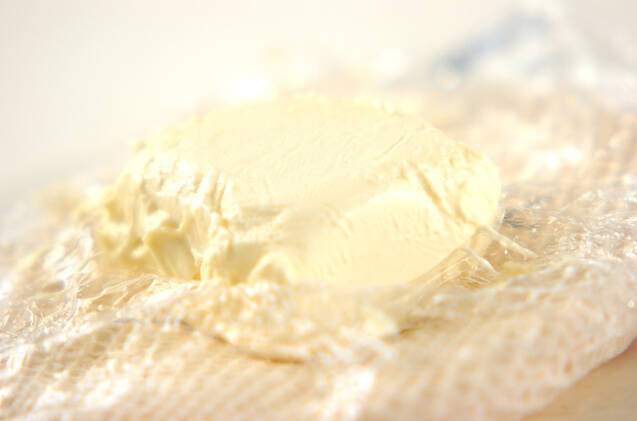 クリームチーズはラップに包み、電子レンジで1~2分加熱して柔らかくする。電子レンジは600Wを使用しています。