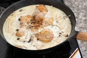 牛乳とコンソメを加え、一煮立ちさせて完成。