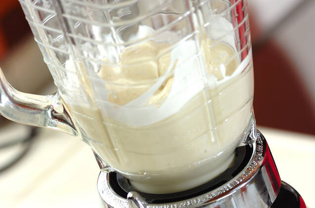 バナナ、プレーンヨーグルト、ハチミツをミキサーに加え、ピューレ状になるまでかくはんする。