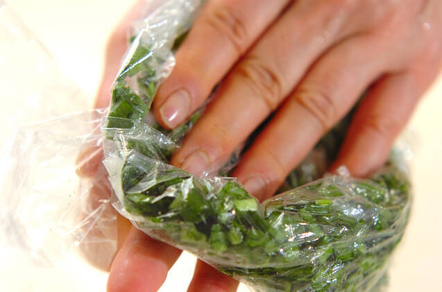 ニラは細かく切って塩でもみ、しっかり水気を絞る。