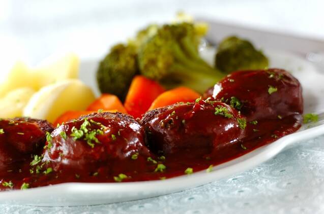 デミグラスにひと手間加えて絶品ソースを。ジューシーなハンバーグには蒸し野菜を添えてバランスよく!