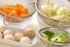 フォンデュ用の長いフォークにお好みの野菜やパンを突き刺し、チーズにからめていただきます。