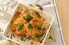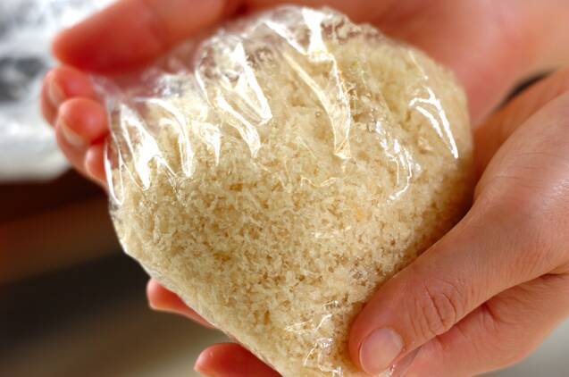 ビニール袋にパン粉とフレンチドレッシング大さじ2を入れ、振って合わせる。