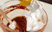 (5)に(6)のメレンゲを2回に分け加え、ゴムベラで混ぜる。