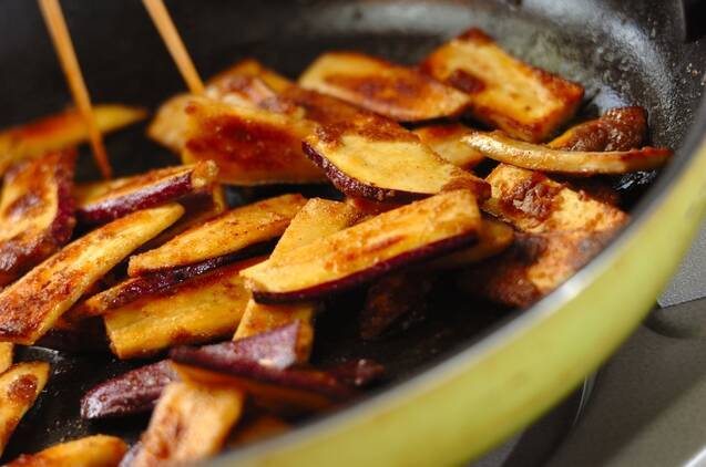 砂糖が溶けて照りが出てきたら火を止め、器に盛る。
