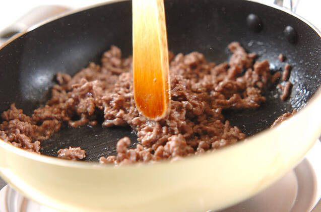 合いびき肉はサラダ油でポロポロになるまで炒める。