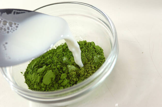 鍋に牛乳、グラニュー糖を入れてグラニュー糖を煮溶かす。抹茶に温めた牛乳を少量加えてダマができないように混ぜ合わせ、鍋の牛乳に戻し混ぜ合わせる。(ヒント)混ぜにくい場合は、ハンドミキサーやミキサーにかけてもOKです。