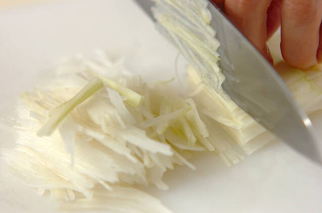 大根は皮付きのままきれいに水洗いし、せん切りにする。