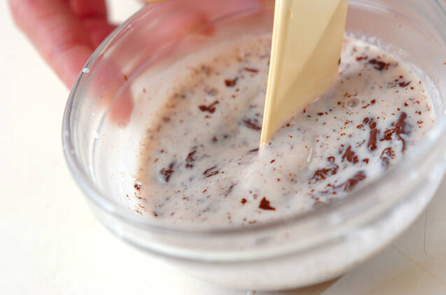 鍋に牛乳を入れて火にかけ、沸騰したら刻んだスイートチョコレートに少しずつ加えてゴムベラで静かに混ぜ、なめらかにする。