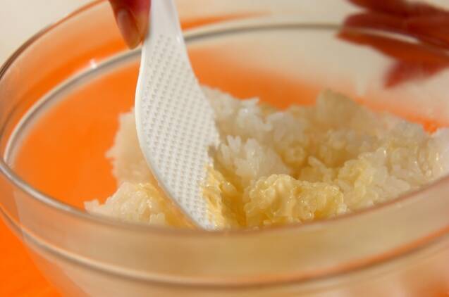 ご飯にマヨネーズを混ぜ合わせる。