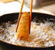 揚げ油でレンコンをパリパリに揚げ、1のコンニャクもサックリ揚げる。