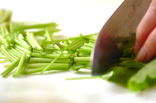 長芋は皮をむいて1.5cm位の輪切りにし、サイコロに切る。