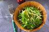 水菜は長さ3cmに、リンゴは皮付きのまま細切りにする。玉ネギは薄切りにし、水にさらして水気をきる。