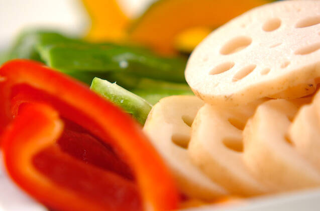 レンコンは皮のままきれいに洗い、厚さ5~6mmに切る。