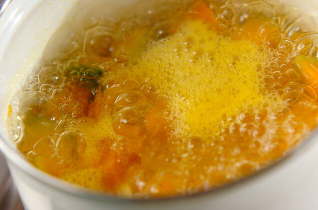 鍋にカボチャを入れ、ヒタヒタにつかるまでの水を入れて火にかける。