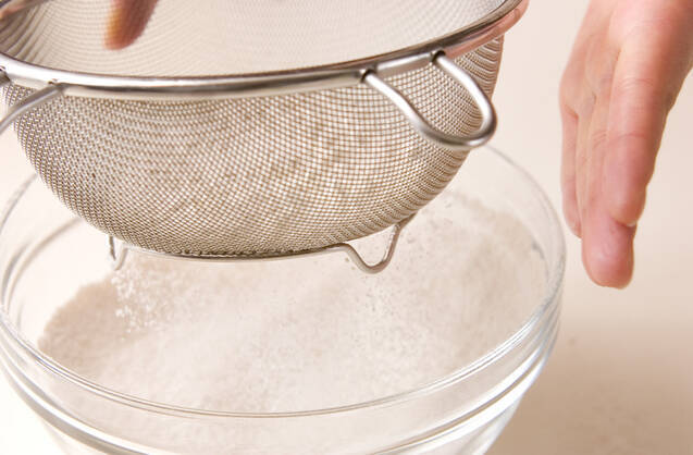 ソバ粉、薄力粉を合わせて網を通し、絞り出し袋を準備しておく。 オーブンを170℃、10~12分に予熱する。
