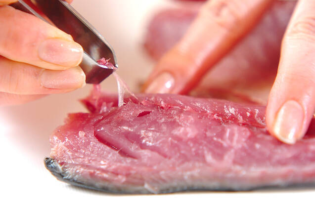 サバは骨を取り、ひとくち大に切る。塩コショウで下味をつけ、小麦粉を薄く全体にまぶす。フライパンにオリーブ油を入れて火にかけ、サバを入れて両面に焼き色がつくまで焼き、耐熱皿に取り出す。
