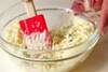 ゆで卵はみじん切りにし、他の材料と混ぜ合わせ<タルタルソース>を作る。玉ネギがピリピリ辛く感じる場合は、布巾に包んでもみ洗いし、絞って使えばマイルドに。
